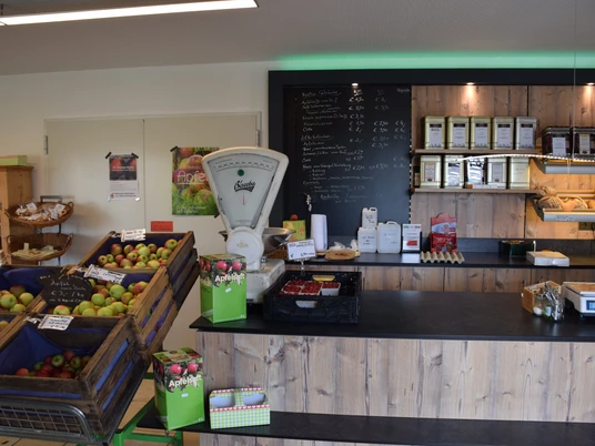 Im Hofladen erhalten Sie außerdem Apfelsaft, Apfelchips, Obstbrände und Liköre aus eigener Produktion. Regionale Produkte von Kollegen, wie Eier, Kartoffeln und Wurstdosen ergänzen das Angebot.