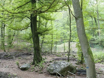 Schon wenige Minuten nach dem Start führt der Weg an den romantischen Felsengruppen „Wilder Mann“ und „Wilde Frau“ vorbei. Diese Felsgruppen, die durch die Eiszeit entstanden sind, haben eine ganz besondere Atmosphäre.